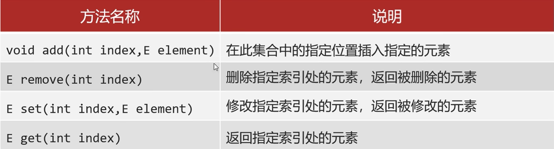 set(int index,E element)修改索引处的元素,返回修改前的元素get(int index)返回索引上的元素