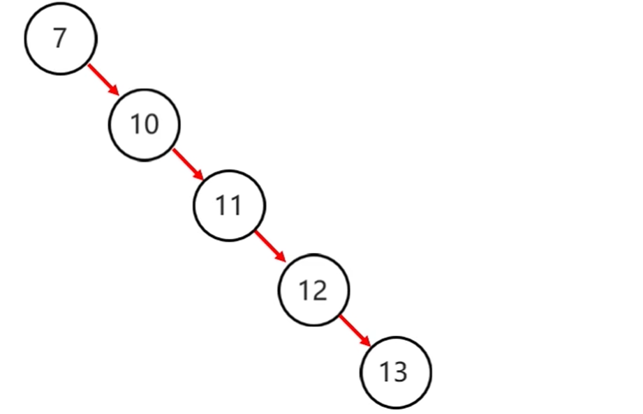 - 左子树全部为空,从形式上看,更像一个==单链表==