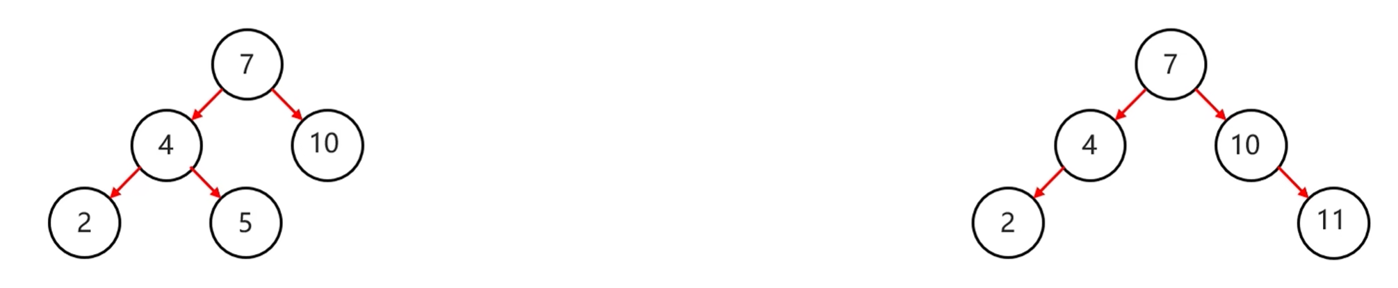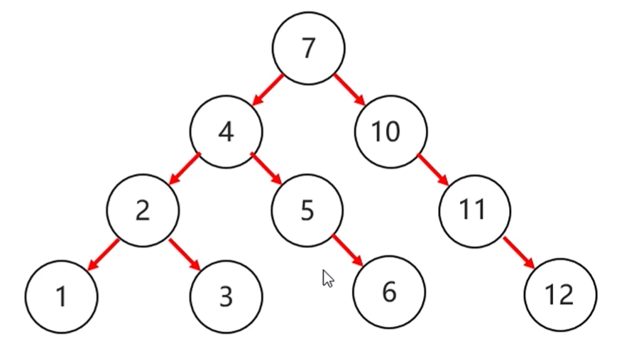 - 任意节点右子树上的值都大于当前节点