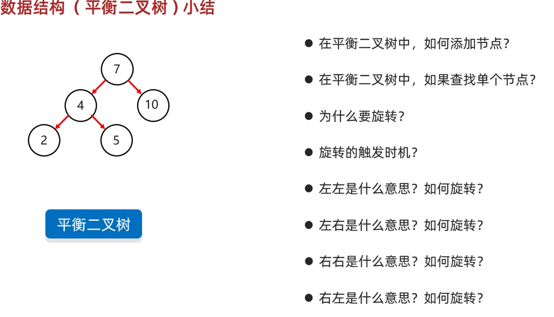 - 当添加一个节点时,该树不再是一颗平衡二叉树 -> 旋转